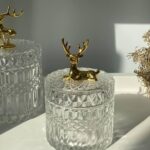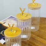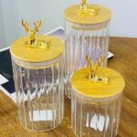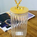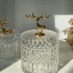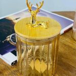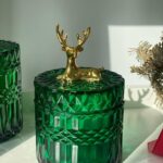Колекція товарів “Золотий Олень” включає в себе підбірку унікальних предметів, прикрашених зображенням оленя. У цю колекцію входять зелені і прозорі цукерниці різного об’єму, набори кружок з кришкою і ложкою, різні банки та ємності для сипучих продуктів, ялинкові прикраси та статуетки тематики “Олень”. Ці вироби відзначаються оригінальністю, високою якістю та стильним дизайном, що робить їх гарним вибором для створення затишної та святкової атмосфери в домі.