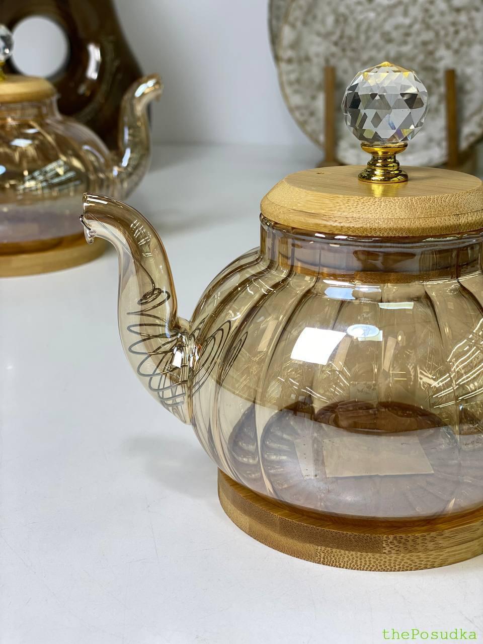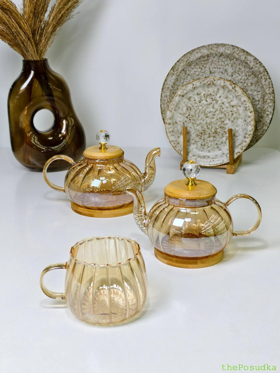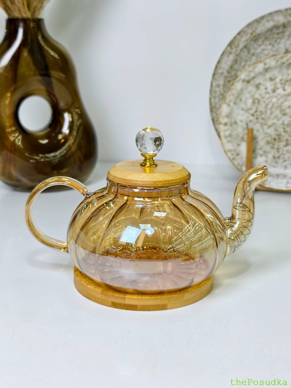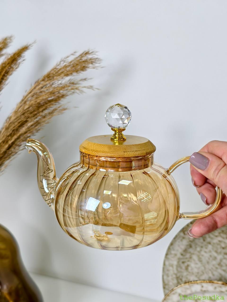 Чайник скляний на підставці “Пампкін”, бурштиновий 🍂