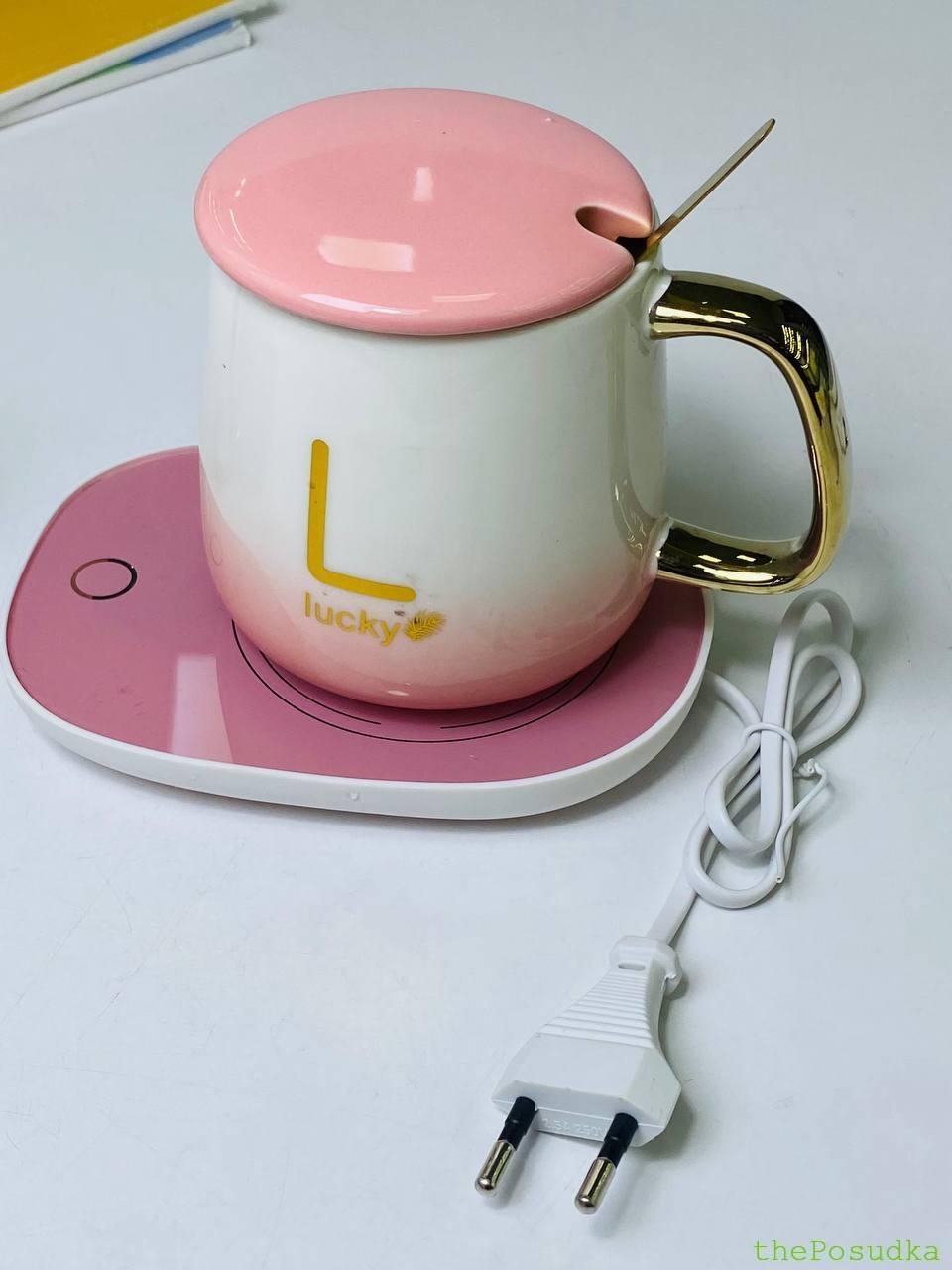Кружка з кришкою, ложкою, блюдцем “Лакі” з підігрівом 440 мл