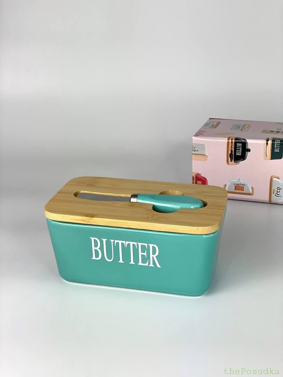 - Повний набір: маслянка + бамбукова кришка + ніж для масла