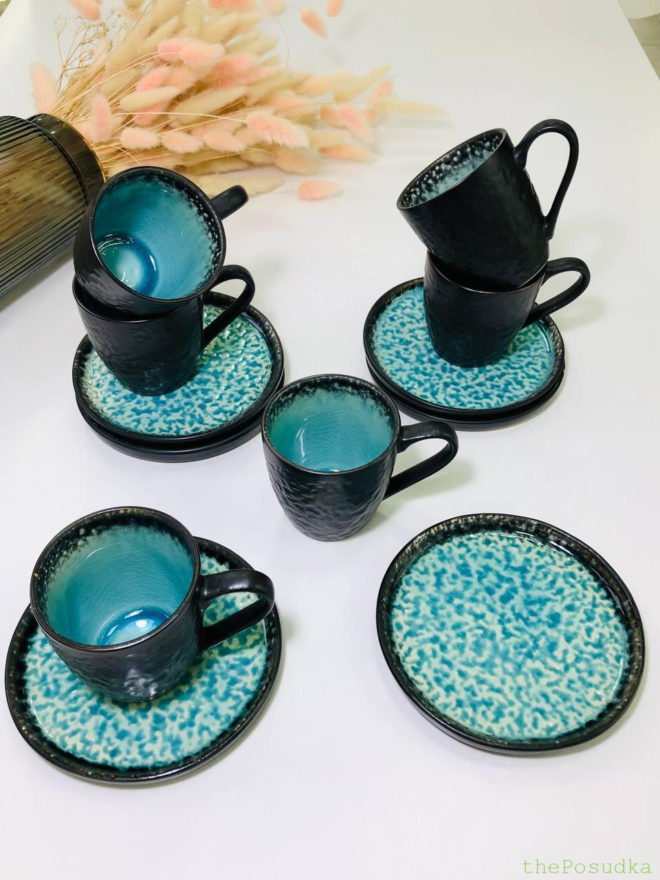 Набір 6 Чашок з Блюдцями "Блу-лейк" 200 мл Набір 6 Чашок з Блюдцями "Блу-лейк" 200 мл 1848,00  Блакитний, Чорний Кераміка 12 200 Для Кави КУПИТИ