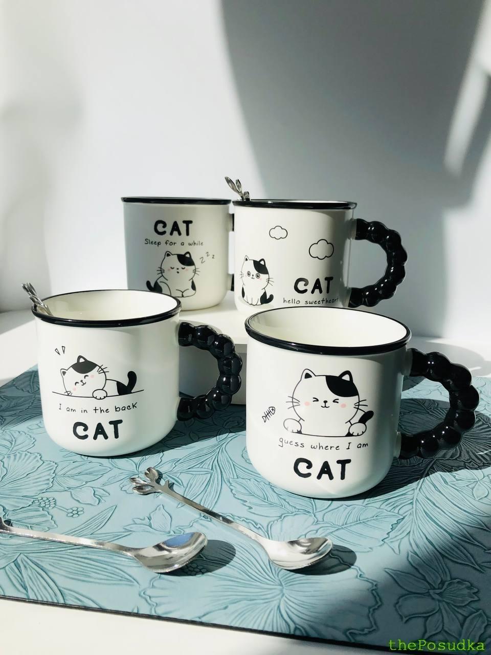 Набір 4 Кружки з ложкою "Джой-кет" 320 мл Набір 4 Кружки з ложкою "Джой-кет" 320 мл 818,00  Білий Кераміка Кругла 8 320 Для Чаю КУПИТИ