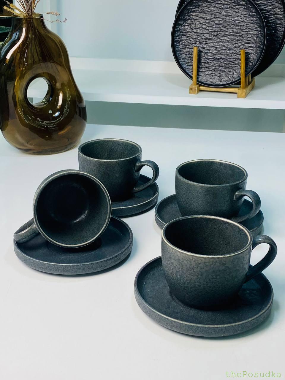 Набір для Кави на 4 Персони з Чашками та Блюдцями “Грейсток”, 250 мл Набір для Кави на 4 Персони з Чашками та Блюдцями “Грейсток”, 250 мл 1056,00  Сірий, Чорний Кераміка Кругла 8 250 Для Кави КУПИТИ