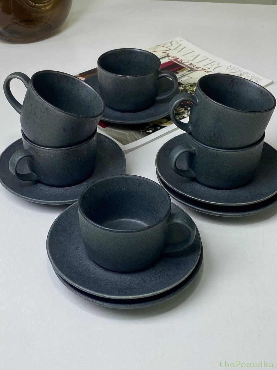 Набір для Чаю, Кави на 6 Персон з Чашками та Блюдцями “Грейсток”, 200 мл Набір для Чаю, Кави на 6 Персон з Чашками та Блюдцями “Грейсток”, 200 мл 1585,00  Сірий, Чорний Кераміка Кругла 12 200 Для Кави КУПИТИ