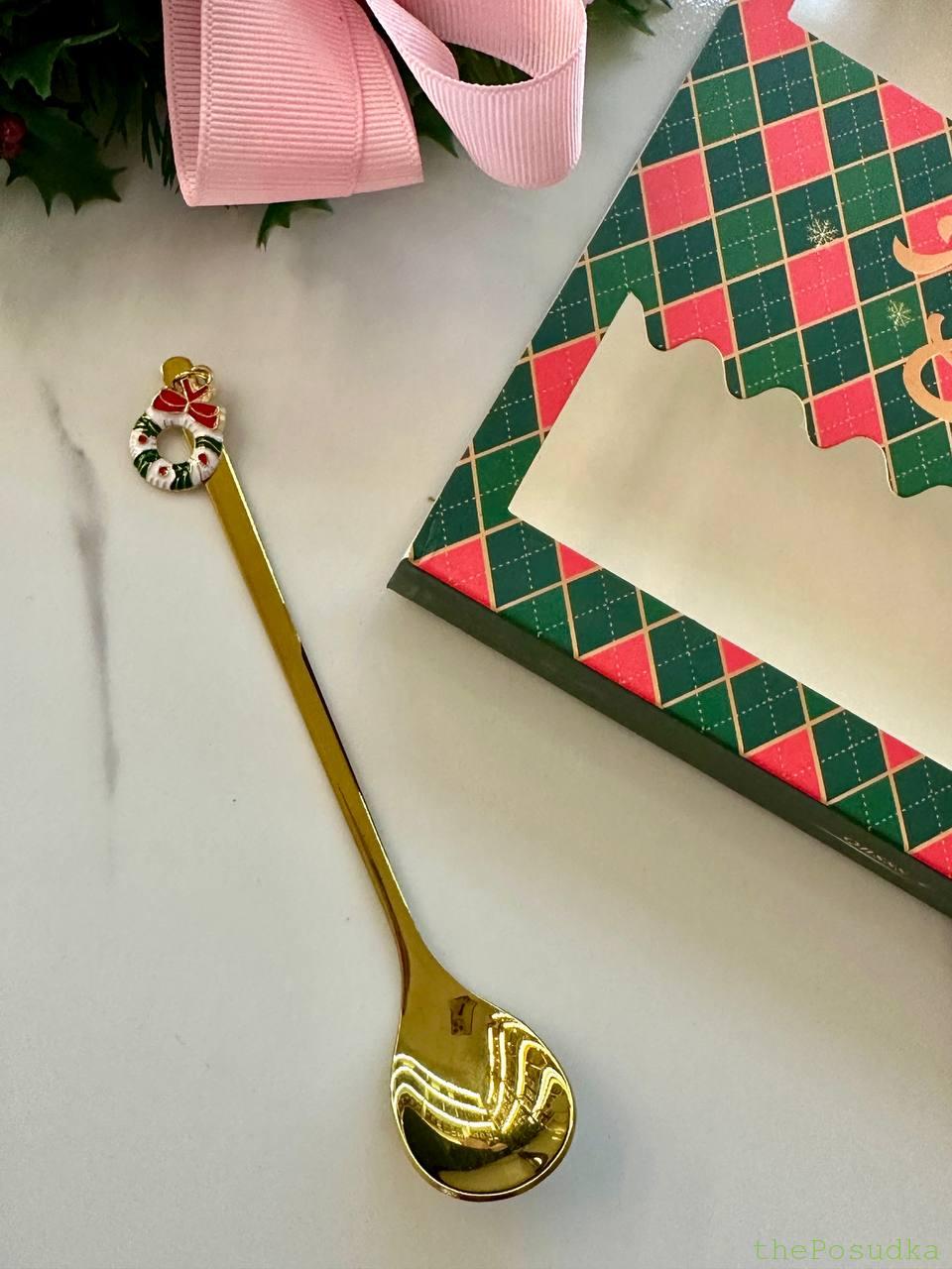 Золотисте покриття надає приборам преміального вигляду. Поєднання блискучого металу з яскравими емалями червоного, зеленого та білого кольорів створює святковий, але не надто дитячий вигляд.